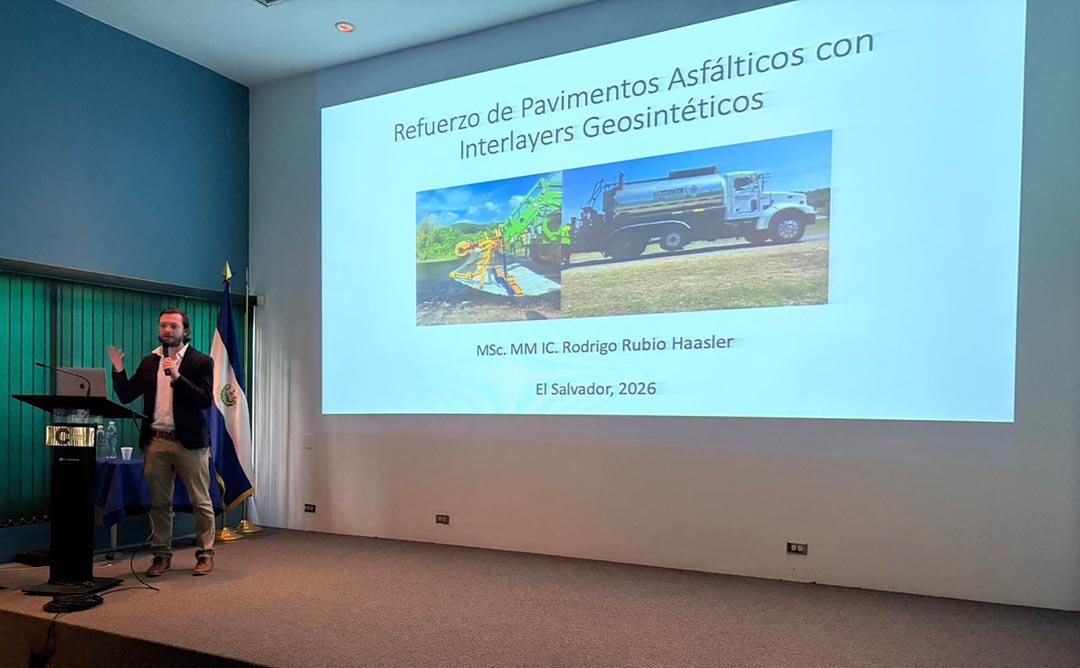 El experto compartió sus conocimientos con arquitectos, ingenieros, gerentes y profesionales de la industria de la construcción, así como con estudiantes universitarios. El tema se centró en el diseño, especificaciones y casos de éxito de la aplicación de geocompuestos para estructuras de pavimentos asfálticos.
